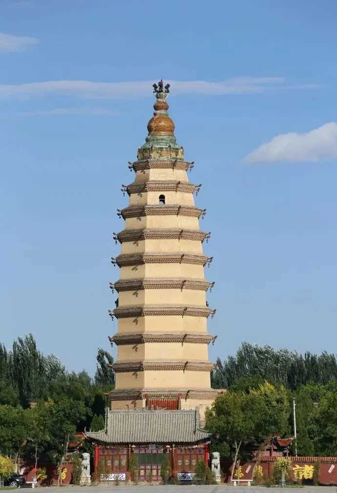 鎮(zhèn)河塔又名東塔,是靈武標(biāo)志性建筑,座落于靈武市區(qū)東南2公里的果園深處,始建年代不詳。一說為元代,一說為清代。