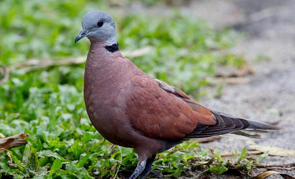 鳩鴿科形較小的品種,也是斑鳩屬中動(dòng)作較為敏捷的品種。飛行甚快,常發(fā)出“呼呼”的振翅聲。雄鳥(niǎo)頭部至后頸呈藍(lán)灰色,頸后有一條黑色領(lǐng)環(huán),延伸至頸兩側(cè)。