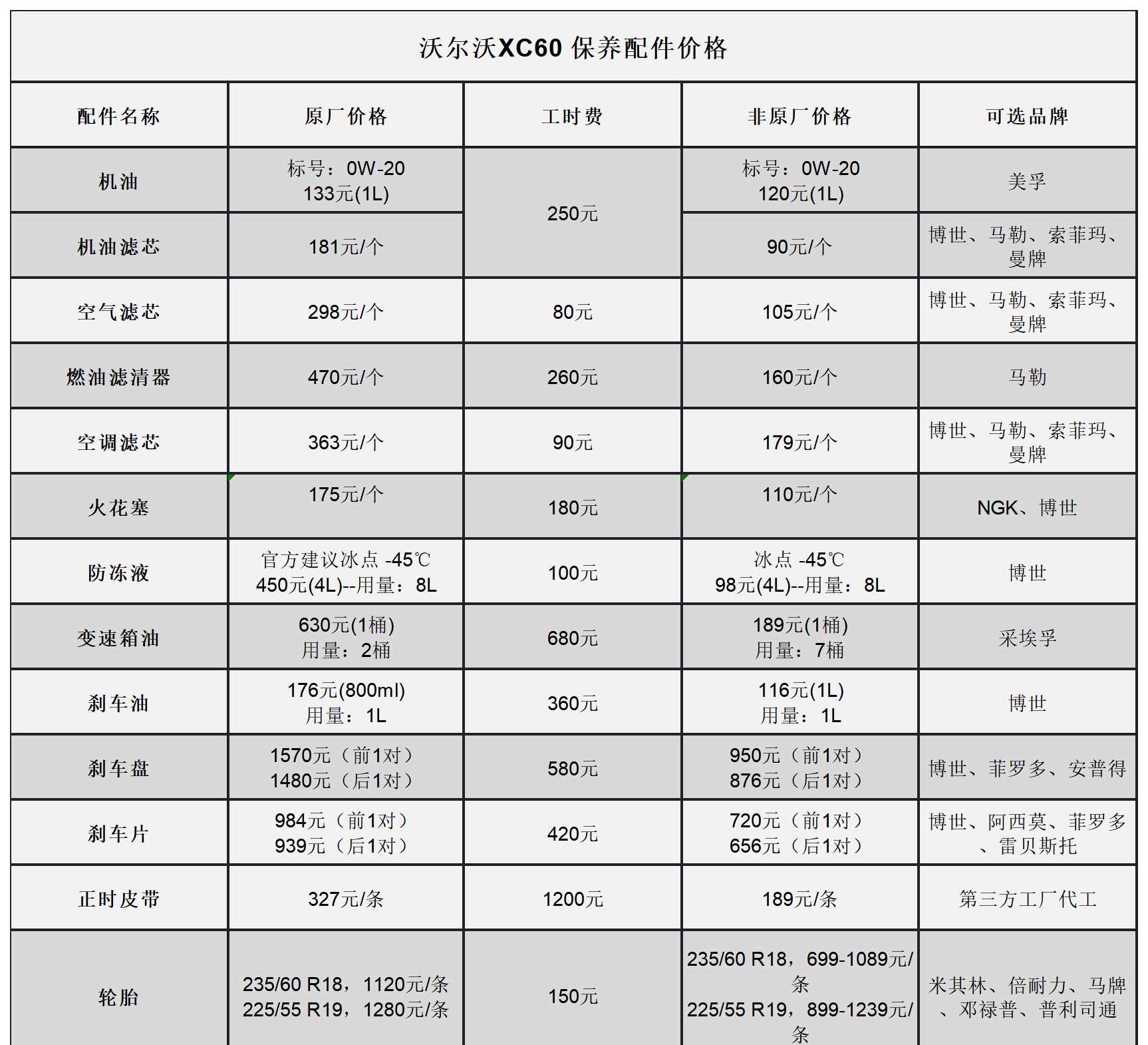 今天我們來對沃爾沃XC60這款車的常規(guī)保養(yǎng)項目價格做一個總結。