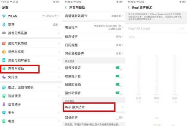 操作步驟:打開設(shè)置——聲音與振動——Real原聲技術(shù)