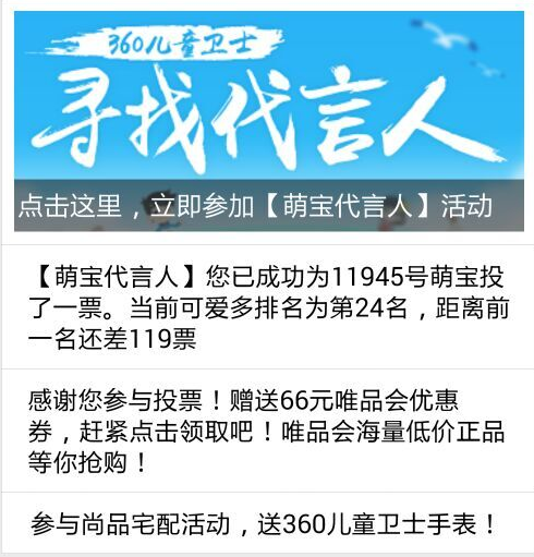 可就在不久之前,我們運營的360兒童衛(wèi)士公眾號策劃的一次“360兒童衛(wèi)士尋找代言人”活動便完成了這個目標。無圖無真相,首先上圖!