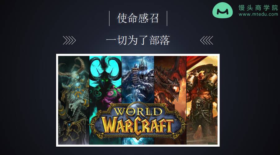 給我一個玩兒你的理由。這張圖很多人應該都知道,是魔獸世界。為什么很多人喜歡玩魔獸世界呢?我問過很多的人,他們給我了一個相同的理由,我們玩兒魔獸世界是因為它是與眾不同的。