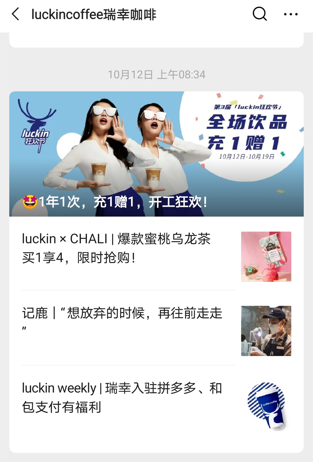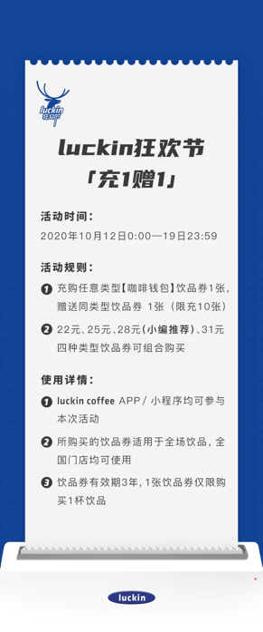 1:活動主題:Luckin狂歡節(jié),充1贈1