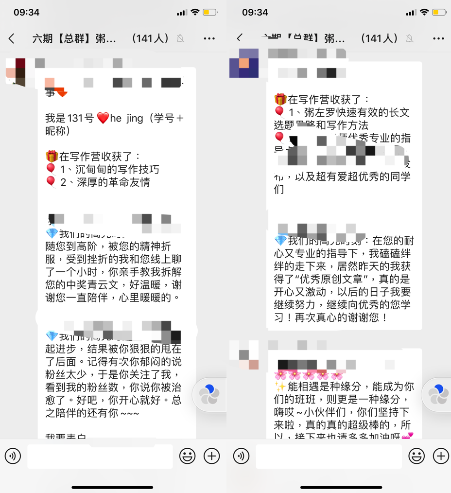 要求班長和助教對每位學員都寫出感言,同時也讓每位學員都發(fā)表感言。群內氛圍非常熱鬧和感動,特別是助教的感言非常打動人心,有的學員都感動哭了。整個氣氛達到高點。對后期的“情感銷售”起了關鍵作用。
