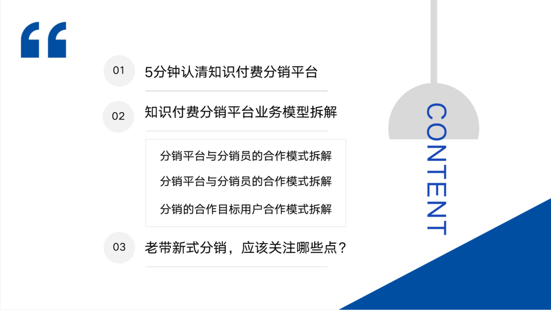 第二個部分會跟大家詳細(xì)拆解知識付費(fèi)分銷平臺的業(yè)務(wù)模式,以及各個關(guān)鍵點(diǎn)。成功的成功在哪里?失敗的可能會失敗在哪里。