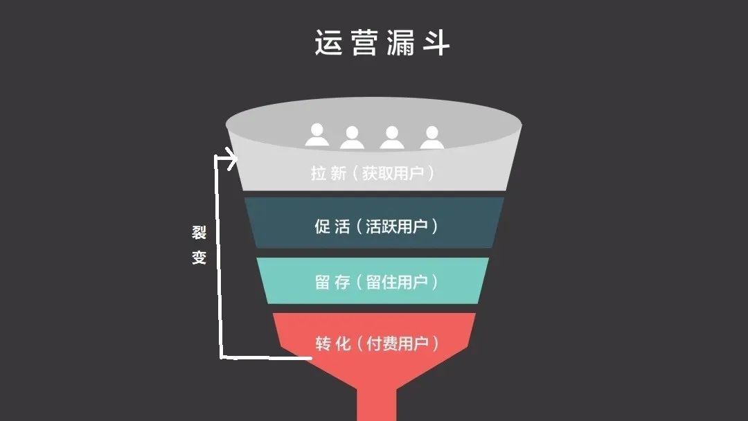 大白話來(lái)說(shuō),用戶(hù)運(yùn)營(yíng)是以用戶(hù)為核心制定運(yùn)營(yíng)策略,來(lái)拉新、促活、留存、轉(zhuǎn)化和裂變。(熟悉的配方,一樣的套路)