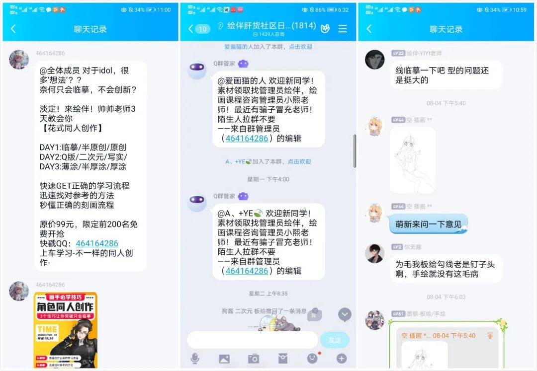 社群運(yùn)營(yíng)較為活躍,管理員老師會(huì)定期在群里發(fā)布免費(fèi)課程消息,通知有時(shí)間和學(xué)習(xí)意向的同學(xué)去學(xué)習(xí),授課老師也會(huì)在群里對(duì)學(xué)員進(jìn)行答疑解惑,同時(shí)每加入一個(gè)新人,社群管理員都會(huì)提示“歡迎新同學(xué)”,并告知材料領(lǐng)取及課程咨詢(xún)應(yīng)該找哪位老師。管理服務(wù)相對(duì)人性化。