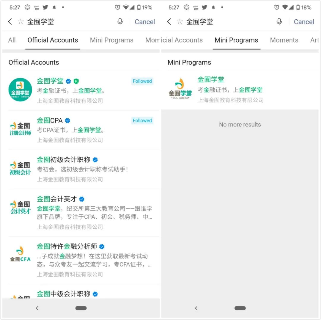 金囿學(xué)堂目前有公眾號(hào)6個(gè),小程序1個(gè),App1個(gè),為其實(shí)現(xiàn)內(nèi)部流量的引入。