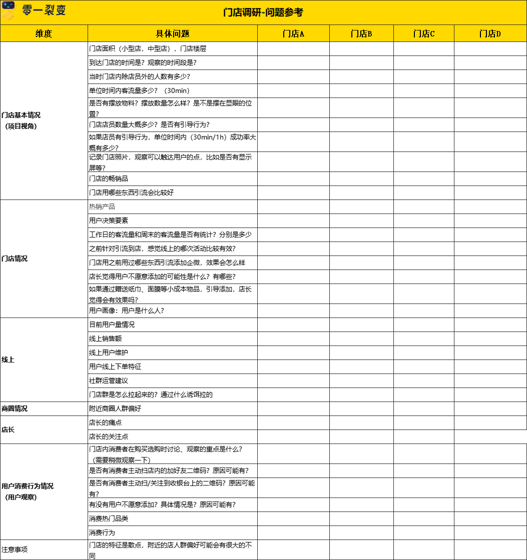 對(duì)門(mén)店進(jìn)行調(diào)研,可以從項(xiàng)目視角出發(fā),了解門(mén)店的基本情況,員工情況,用戶消費(fèi)情況等。