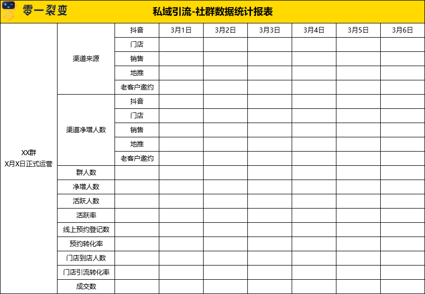 在實(shí)際的數(shù)據(jù)表中:可觸達(dá)的流量、引流轉(zhuǎn)化率、私域流量人數(shù)、首單/復(fù)購(gòu)轉(zhuǎn)化率、客單價(jià)、復(fù)購(gòu)率與復(fù)購(gòu)周期都是我們會(huì)特別注重的。