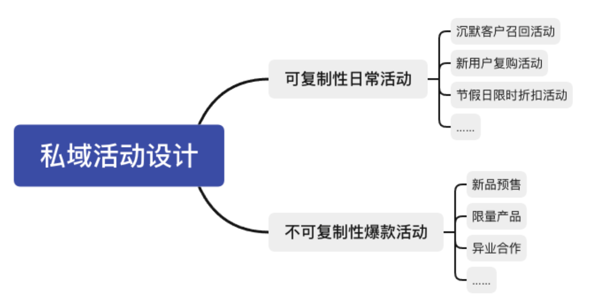 私域活動主要分兩類,分別是可復(fù)制性與不可復(fù)制性。