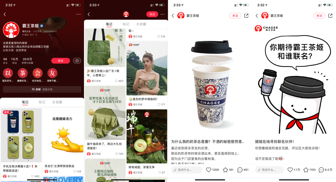 霸王茶姬內(nèi)容營(yíng)銷:筆記類型主要包括新品宣傳,飲品種草、生活記錄等。我們看到上方圖片筆記內(nèi)容,通過提問以及征收用戶意見,獲得了高互動(dòng)量。霸王茶姬在小紅書上的爆款產(chǎn)品主要是其招牌飲品“霸王奶茶”。霸王奶茶的賣點(diǎn)是口感濃郁、茶香濃郁、奶香香濃,同時(shí)還提供了多種不同的口味和搭配,滿足了不同用戶的需求。在小紅書上定期推出各種優(yōu)惠活動(dòng),如每周會(huì)員日85折、打卡送飲、限時(shí)特惠、新品試飲等,以及節(jié)日+放松新生活的運(yùn)動(dòng)風(fēng)想用戶展現(xiàn)其運(yùn)動(dòng)精神,吸引用戶的參與和購(gòu)買。