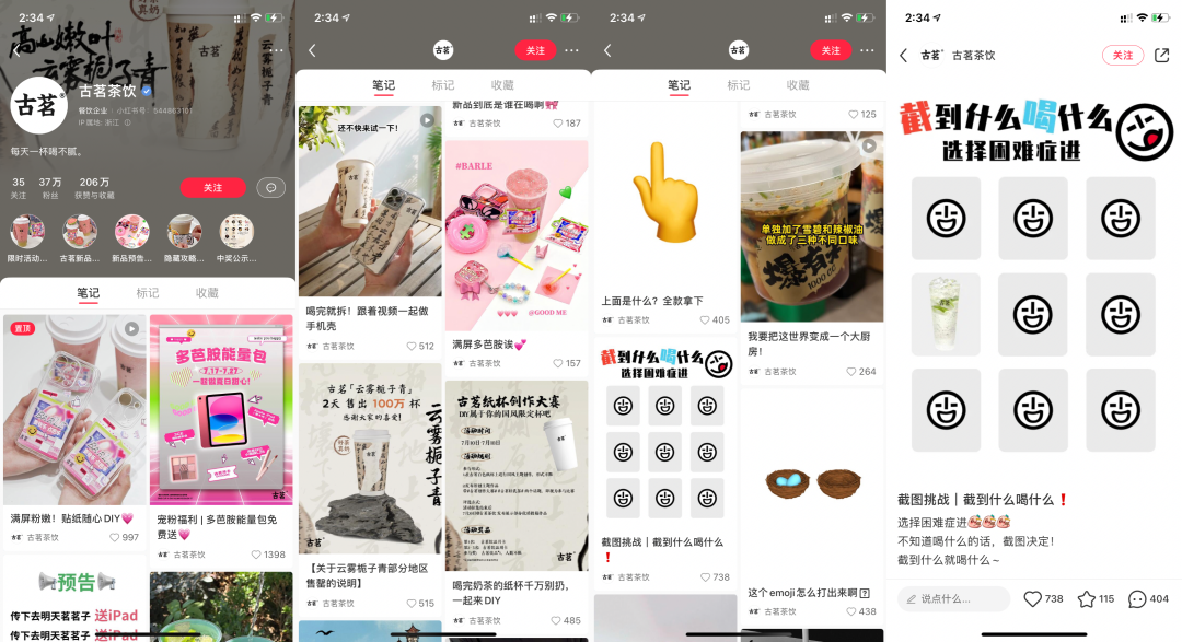 古茗在小紅書上的差異化營(yíng)銷主要表現(xiàn)在兩個(gè)方面。首先,它的品牌定位是高品質(zhì)茶飲,通過精選高品質(zhì)原料、獨(dú)特的制作工藝等方式來打造高品質(zhì)的茶飲。通過精美的圖片、有趣的文字、短視頻等多種形式來呈現(xiàn)這些內(nèi)容,并將品牌理念和產(chǎn)品特點(diǎn)融入其中。此外,古茗還與一些KOL、博主合作,通過他們的推廣和評(píng)測(cè)來增加品牌曝光度和用戶購(gòu)買欲望。多樣化的內(nèi)容策略不僅能夠吸引用戶的注意和關(guān)注,還能夠提高用戶對(duì)品牌的認(rèn)知度和好感度。茶飲制作教程是最受用戶歡迎的筆記類型之一,通過圖文并茂的方式展示茶飲制作的具體步驟和技巧,吸引用戶的學(xué)習(xí)和嘗試。知識(shí)科普和品牌故事則能夠提高用戶對(duì)品牌的認(rèn)知度和好感度。這種多樣化的筆記類型能夠吸引不同類型的用戶參與和互動(dòng)。