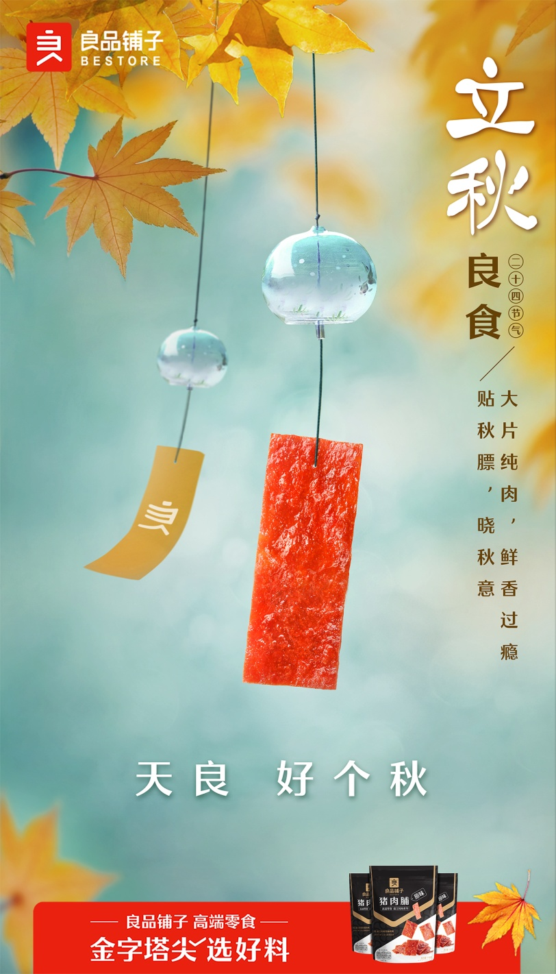 良品鋪子以零食在載體,在海報上營造出濃厚的傳統(tǒng)文化氛圍,輸出兼具品牌個性、視覺美感、文化意蘊、價值主張和生活美學(xué)的優(yōu)質(zhì)內(nèi)容,極具人文氣息。