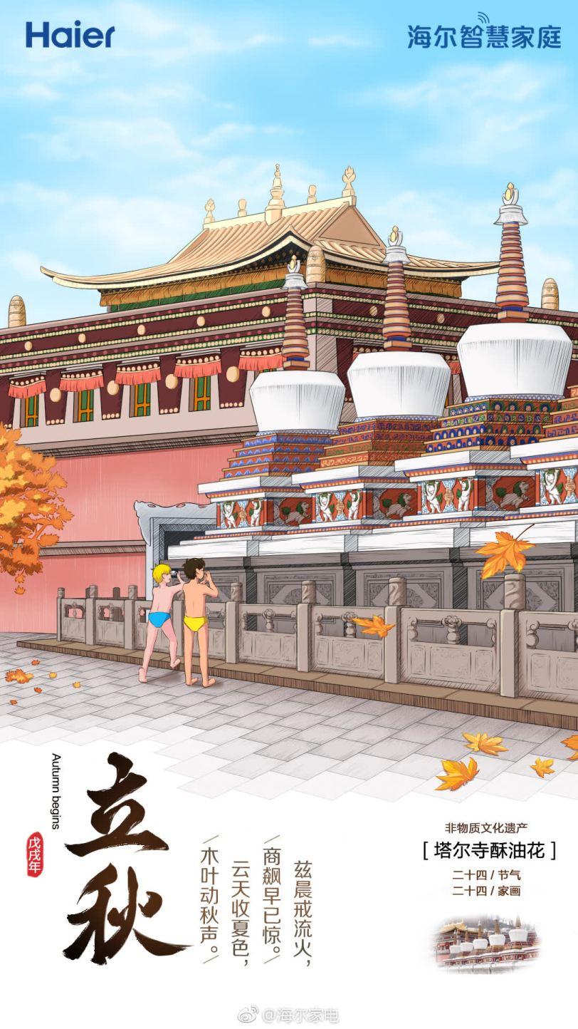此外,海爾家電與塔爾寺攜手推出海報,宣傳非物質(zhì)文化遺產(chǎn)“塔爾寺酥油花”,從傳統(tǒng)文化出發(fā),為塔爾寺宣傳的同時也增大了自身的影響力,實現(xiàn)雙贏。