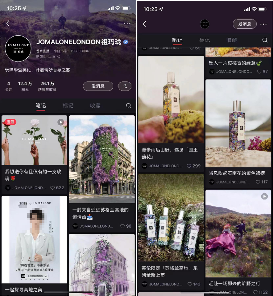 祖瑪瓏在小紅書超過10萬+篇筆記,官方賬號有12.4萬的粉絲。主要以產(chǎn)品宣傳為主,有香水、香氛等產(chǎn)品為,每一篇都很有調(diào)性,符合高端品牌的形象。