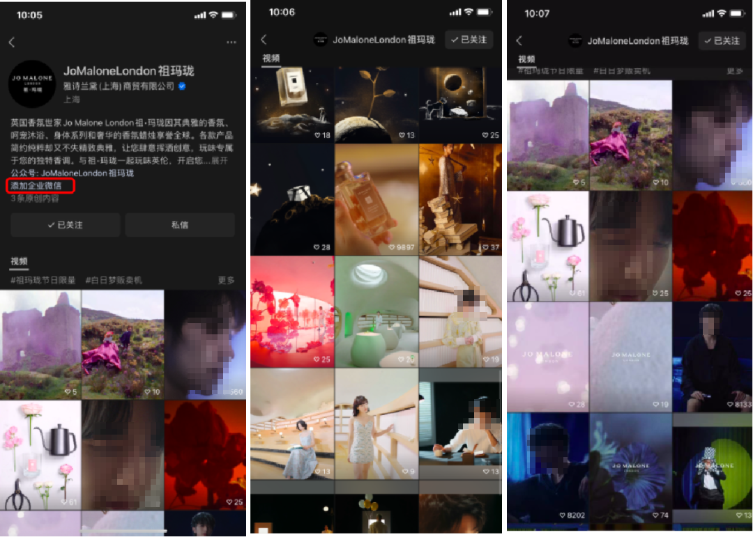 祖瑪瓏在是視頻號主頁直接放置了企微的信息,點擊即可添加。視頻主要的內(nèi)容是以、新品促銷、產(chǎn)品推薦、樹立品牌形象為主。