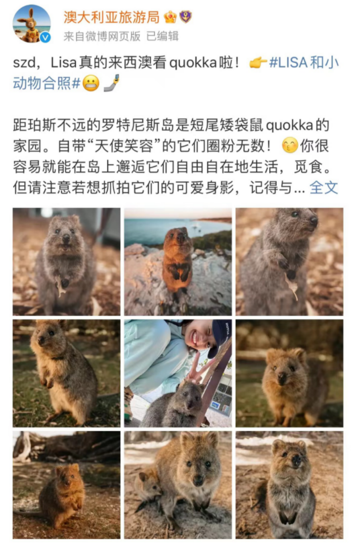 同時(shí),微博作為多種內(nèi)容的聚合平臺,明星相關(guān)的內(nèi)容有著極高的討論度,給目的地的推廣也帶來了借勢明星效應(yīng)的機(jī)會。@澳大利亞旅游局曾發(fā)布藝人打卡澳大利亞的照片,通過明星效應(yīng)充分吸引粉絲群體的關(guān)注。