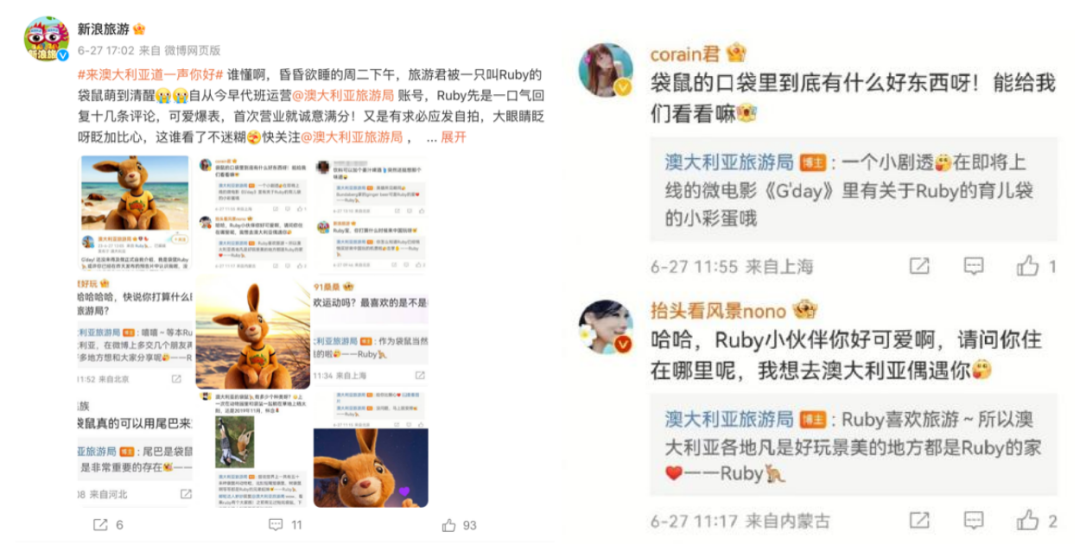 從Ruby形象的破圈,到動(dòng)畫電影吸引關(guān)注,再到用戶對目的地種草,澳大利亞旅游局在微博平臺上呈現(xiàn)了當(dāng)下出境游行業(yè)內(nèi)容營銷的新思路。