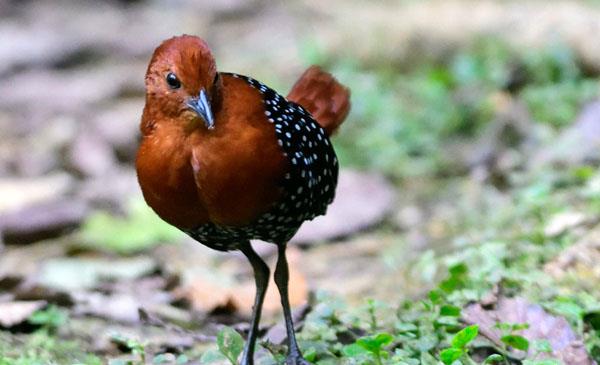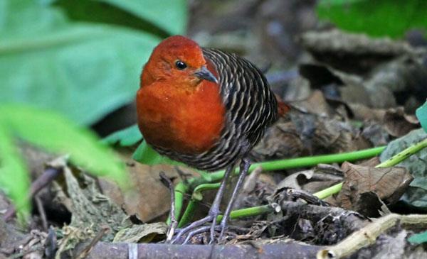 體型小巧,顏色鮮艷的秧雞品種,擁有玲瓏的軀體和小巧的尾巴。野生于沼澤森林和濕地,主要以植物嫩芽和種子為食,兼食昆蟲和小型水生動物。通常在距水面不高的密草叢中,以蒲草和蘆葦葉筑巢。