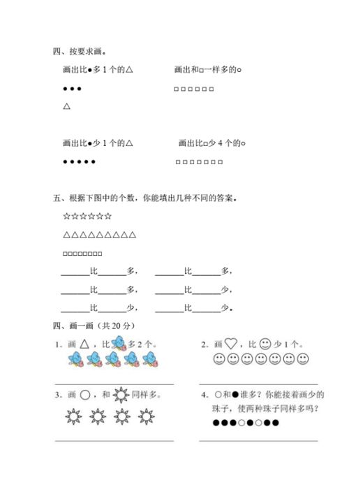 ] 談話引入新知1.感受多少。教師板書:多一些 少一些 多得多 少得多 師:你們對這些詞是怎樣理解的?(可以借助圖片、手勢和身邊的事物說一說。)