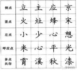 點的寫法:側(cè)鋒落筆,落筆要快,力量要重,略頓之后即回鋒收筆,要圓聚有力。其運筆過程:逆鋒向上,折鋒向右,轉(zhuǎn)鋒向下行,稍駐停頓,回鋒向左上方收筆。