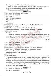 OK, some flowers! Give her some flowers with best wishes. I think they' re the best gifts for her! B. The day after tomorrow is my mother' s birthday. What should I get her? C. Yeah! Good idea! I will help her finish housework and then give her the beautiful flowers! D. Does she like little animals? Why don' t you get her a pet cat? E. No way. It' s too expensive and I haven' t enough money to buy it. F. Great! I think your mother will happy to receive your gift. G. No, she doesn' t like them at all. H. Yes, I' d love to. I. What about a camera? I think it' s a nice gift for your mother. J. Thank you! Will you go and buy the flowers with me? 1.______ 2.______ 3.______ 4.______ 5.______ 6.______ 7.______ 8.______ 9.______ 10.______ 答案:B D G I E A C F J H B.用所給的詞填空(15分) collector,let,either,annoyed,love,boring,credit,watching,probably,chance 1.He always talks to me in class. This gets me______. 答案:annoyed 2.The soap opera was ______.I fell asleep nearly. 答案:boring 3.—I want to buy the petdog. But I have no enough money with me. —You can pay for it with ______card. 答案:credit 4.Please______him in. He has something important. 答案:let 5.—Do you like the movie? —No, I don' t. —I don' t like it,______. 答案:either 6.He will do better if you give him a______. 答案:chance 7.—Where is Lucy? —She ______is playing games with Han Mei. 答案:probably 8.When I got to the Great Wall first, I fell in ______with it. 答案:love 9.How long have you been ______TV? It' s bad for your eyes. 答案:watching 10.He is a great stamp ______.He has been collecting stamps for forty years. 答案:collector C.根據(jù)括號(hào)中的漢語(yǔ)提示完成句子(10分) 1.It' s Sarah' s birthday tomorrow. What should I do? Can you ______me your______(你的建議)? 答案:give, comments 2.Let' s get her a scarf, It' s not______ ______(夠有創(chuàng)意). 答案:creative enough 3.Do you have a______ ______(網(wǎng)球拍)? 答案:tennis racket 4.Why______you______(不買) a goldfish for her? I think she will like it. 答案:don' t, buy 5.Please give her a______ ______Paris(巴黎之旅). 答案:trip to Ⅲ.完形填空(10分) What must you do when you receive a present 1 your birthday? You have to sit down and write a thank-you note. The words “Thank you” are 2 important. We have to use them very often. We say them when someone gives us a drink, 3 us to pick up things, lends us a book or gives us a gift. Another important word is “please”.Many people 4 to use it. It is rude to ask someone to do something without saying “please”.We have to use it when we 5 something, too. It may be a book 6 a pencil, more rice or help. We have to use “please” to make request pleasant. We have 7 “Sorry”,too. When we have 8 someone, we' ll have to go up and say we' re sorry. When we have forgotten something, we will also say “sorry”.We can make people 9 wrongs by saying it. These three words are 10 .Our children must learn to use them. They are pleasing words to use in any languages. 1.A.in B.at C.for D.to 答案:C 2.A.so B.very C.rather D.such 答案:B 3.A.helps B.has C.lets D.makes 答案:A 4.A.want B.forget C.like D.remember 答案:B 5.A.ask for B.say C.need D.want 答案:A 6.A.but B.and C.or D.as 答案:C 7.A.learn to say B.to learn and say C.learn and say D.to learn to say 答案:D 8.A.fell B.touched C.felt D.hurt 答案:D 9.A.remember B.forget C.need D.think 答案:B 10.A.difficult but important B.simple but important C.useful but difficult D.helpful but difficult 答案:B Ⅳ.閱讀理解(20分) A Ted worked in a factory in a big town. He liked fishing very much, and was good at it. Whenever he was free, he went down to the small river behind the factory and tried to catch some fish, but there were very few there, because the water was dirty. Then one summer he went to the seaside during his holidays and stayed at a small, cheap hotel. “I' ve never fished in the sea before,”he thought.“It will be rather different from fishing in our river.” On the first day he caught a lot of fish and was very happy. He gave them to the hotel, and they cooked them for all the guests, and they enjoyed them very much. After that he did this every day. But when Ted got his bill(賬單) at the end of the week, he saw on it. “For oil to fry fish (7 days):£ 3.50.” 閱讀下面短文,選擇正確答案(10分) 1.Ted worked as a______ and he was good at______. A. worker; 。