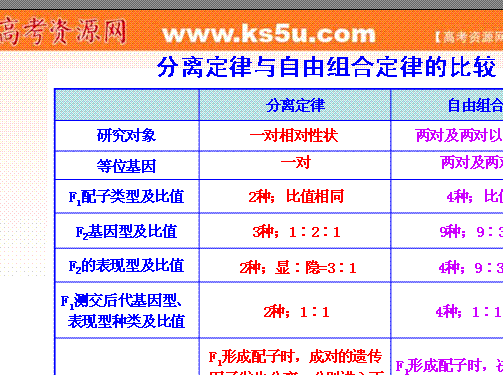 自由組合定律 講的則是 位于不同染色體上的、非等位(不同)基因之間的關(guān)系,本質(zhì)是一對基因中的2個基因 (A & a)與另一對基因中的2個基因(B & b)之間,在形成新的子細胞過程中 是隨機組合的,A可以與B組合 也可與b組合,a也一樣,概率相等,謂之“自由組合”。
