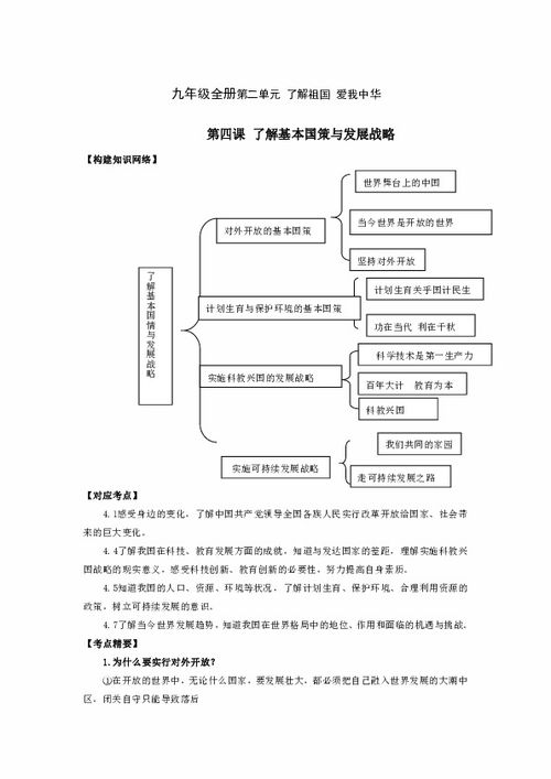 3、最終實現(xiàn)祖國統(tǒng)一大業(yè)(解決臺灣問題)的基本方針是“一個國家、兩種制度”。4、我國人口現(xiàn)狀的基本特點是人口基數(shù)大、新增人口多、人口素質(zhì)偏低。
