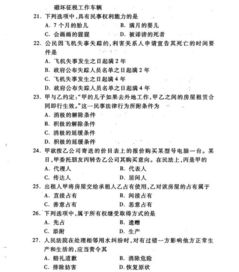 A. 作為法律基礎(chǔ)的社會物質(zhì)生活條件B. 國家制定和認(rèn)可的法的各種具體表現(xiàn)形式C.國家制定和認(rèn)可的法律制度與法律關(guān)系D. 各種法律法規(guī)的相互聯(lián)系性2.市場經(jīng)濟的基礎(chǔ)法律是( )。A.憲法 B.經(jīng)濟法C. 民法 D.行政法規(guī)3.李某因長期不向借款人要求還款,導(dǎo)致訴訟時效期間屆滿,李某因此喪失了( )A.債權(quán) B.所有權(quán)C. 勝訴權(quán) D.起訴權(quán)4.按份共有人對共有財產(chǎn)( )。
