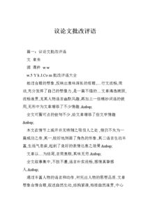 作文批改評語大全 能過合理的想象,反映出意味深長的哲理,…行文流暢,簡潔,充分發(fā)揮了自己的想像力,是一篇不錯的…文章清逸婉麗,流暢連貫,尤其人物語言幽默風(fēng)趣,再加上一些精妙詞語的使用,無形中為文章增添了不少情趣. 全文可圈可點的佳句不少,給文章增添了些文學(xué)情趣 本文在故事情節(jié)上或許并無特別之吸引人之處,但仍不失為一篇成功之作,其一,較好地刻畫了角色的形象,其二語言生動豐富,生活氣息濃,起到了良好的表情達(dá)意之效果 文章以…為結(jié)尾,言簡意賅,其味無窮. 全文敘事集中,不枝不蔓,語言樸實流暢,感情真摯感人. 通過豐富人物的語言和動作,襯托出人物的思想品質(zhì).文章想象合情合理,敘述自然生動,結(jié)構(gòu)緊湊,銜接自然連貫,中心突出. 語言樸素,中心明確,構(gòu)思合理,行文層次清楚. 能把人物內(nèi)心活動寫得十分生動,的確難能可貴,給人留下了深刻的印象. 文章頭尾照應(yīng),中心明確,結(jié)構(gòu)完整. 全文酣暢淋漓,一氣呵成,蘊藏著歡樂與期盼,真摯感人.開頭出手不凡 文章真實感強,立體感強,可讀性強,趣味性強.以敏銳的社會洞察力,以童話反映現(xiàn)實陰暗面,并以生動的語言,描繪出一幅幅貪婪眾生相,稱得上入木三分 本文以…為線索,使用權(quán)文章連貫,流暢,銜接自然,同時,通過前后具體事例的對比.抨擊了……,文章語言生動豐富,可讀性強. 文章有理有據(jù),說服力強,突出人物個性,上下文過渡自然,條理清晰,首尾照應(yīng),結(jié)尾點題,突出中心思想. 作者對…觀察仔細(xì),描寫細(xì)膩,語言生動活潑,表現(xiàn)手法富有新意. 全文語言樸實,結(jié)構(gòu)自然.…文章結(jié)構(gòu)嚴(yán)謹(jǐn),首尾呼應(yīng). 語言詼諧有趣,情節(jié)安排曲折生動,開頭與結(jié)尾的呼應(yīng)巧妙.本文篇幅雖短,但內(nèi)容生動具體,段落明確,語言樸實,通俗易懂. 文中一系列表現(xiàn)人物動作的動詞運用得準(zhǔn)確,襯托手法運用得好. 本文采用了第一人稱的寫法,使得…具有很大的優(yōu)勢,對于塑造人物,表現(xiàn)中心起到了良好的作用,讀起來親切自然可信.思路清晰,節(jié)奏明快. 本文事情過程寫得具體,明晰,條理清楚.作者在敘事的同時加入了恰當(dāng)?shù)男睦砻鑼懀浞直磉_(dá)了… 文章用孩子的語言敘事,顯得自然,樸素,猶如一股清泉.結(jié)尾點題,起到了畫龍點睛的作用. 文章真實生動,情真意切,特別是…使用權(quán)文章極具感染力,發(fā)人深思. 敘述事情條理清晰,能正確地使用動詞,運用比喻貼切,生動.獻(xiàn)計獻(xiàn)策讀后能從中受到教育. 樸實自然的童心體現(xiàn)在文中,使文章散發(fā)著清新活潑的氣息. 這篇文章以具體的事例,生動優(yōu)美的語言,新穎別致的寫法,表現(xiàn)了對美好心靈的由衷贊. 本文主要優(yōu)點有三:1本文能緊扣題目要求,完整地寫了…的過程.2,結(jié)構(gòu)嚴(yán)謹(jǐn),重點突出.3,語言樸實,簡潔,流暢,開頭和結(jié)尾都很自然,準(zhǔn)確. 開頭簡潔自然,結(jié)構(gòu)清晰,心理描寫真實,體現(xiàn)出作者良好的語言駕馭能力. 這篇短文的特點可概括為親切,溫馨,雋永. 文中描繪的…清新活潑,歡快明朗.字里行間跳動著的童心,使文章也有了生命力. 文章憑著豐富的想象,憑著多彩的語言,將…呈現(xiàn)讀者面前. 文章簡潔明了,語言平淡樸實. 作者觀察細(xì)致,想像力豐富,運用擬人,比喻等手法,使生動活潑,引起了讀者的興趣. 借景抒情,托物詠志,很特色. 文章在民間傳說的基礎(chǔ)上,進(jìn)行合理想象和生動描述,演繹出一篇精彩的童話故事,讀來饒有趣味. …要求通過虛構(gòu)的故事來表達(dá)一種哲理. 本文很好體現(xiàn)了…的特點,深刻的主題與新穎的構(gòu)思相得益彰. 巧用伏筆是文章的一大特點.文章第一段就為全篇故事的發(fā)展做了極好的鋪墊.這種構(gòu)思非常巧妙,可以借鑒. 這是一篇很有新意的…文章構(gòu)思巧妙,語言樸實自然. 作品的構(gòu)思是巧妙的,文筆也是簡潔流暢.想象大膽,富有創(chuàng)造力,文章讀起來新穎奇特極具吸引力. 想象力較豐富,極具新意.開頭自我介紹,引入下文,另外,文章語言簡明扼要,風(fēng)格幽默誤詼諧. 文章不長,但過程敘述得很清楚,人物的活動描述得也具體,真實可信,生動有趣,全文結(jié)構(gòu)緊湊,完整,文筆也較流暢. 情節(jié)生動有趣,敘述清楚完整,也表現(xiàn)出作者的聰明,機智,充滿了家庭生活情趣,文筆流利活潑. 你很善于抓住事物的特點進(jìn)行具體描繪,展示了…,文筆間滲透了情感. 文章很有說服力,也發(fā)人深思.從寫作上來說,情節(jié)生動,文章有波瀾,讀起來深受教益. 主題凝煉,集中,議論深刻,有力,震撼人心. 本文用詞準(zhǔn)確,嚴(yán)密,語言平實自然,而比喻,擬人等修辭的運用更使文章錦上添花. 這篇作文的主要特色是敘述具體,細(xì)節(jié)真實,描寫生動,有真情實感,并運用了比喻,擬人等修辭手法,把…寫得非常傳神,同時表達(dá)了…對…的喜愛. 全文語言生動準(zhǔn)確,情節(jié)精彩曲折,仿佛將讀者帶進(jìn)了開心樂園,令人眉開眼笑. 全文通俗易懂,趣味性強. 文章線索明朗,主題突出,緊緊圍繞…進(jìn)行.文章開頭與結(jié)尾時的詩化語言,充滿想象與韻律之美,令人愿讀,愛讀,不忍釋手. 雖為一件小事,但作者卻描述得有聲有色,結(jié)尾處不可或缺的點晴之筆,